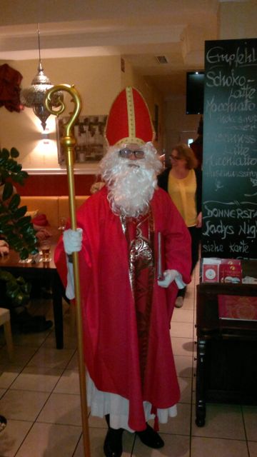 Der Schafkopf-Stammtisch hat sich inzwischen als feste Größe im gesellschaftlichem Leben der Gemeinde (und darüber hinaus) etabliert. So ein Erfolg spricht sich dann scheinbar auch bis in höhere Sphären herum. Der Nikolaus stattete den Schafkopfern einen Besuch ab und war voll des Lobes ob des gastwirtschaftlichen und gesellschaftlichen Engagements des frischen Windes und hier im speziellem von Sascha Müller, dem Erfinder und Organisator des Schafkopf-Events. Dieser freut sich am meisten daß Monat für Monat jeweils an mindestens vier Tischen fröhlich gekartelt wird. Daß nebenbei natürlich auch munter politisiert und neue Ideen für frische Aktionen angedacht werden versteht sich dabei von selbst.