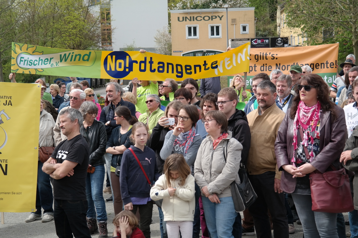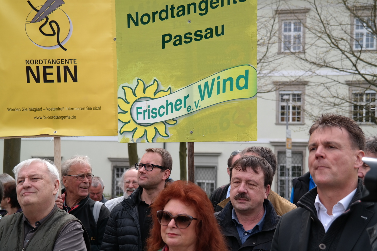 Viele bekannte Gesichter waren zu sehen am Sa. 16. April am Klostergarten und Ludwigsplatz bei der Kundgebung gegen die Nordtangente. Viele Salzweger darunter. Und natürlich auch viele Sympatisanten, Mitglieder und Aktivisten des Frischen Wind.